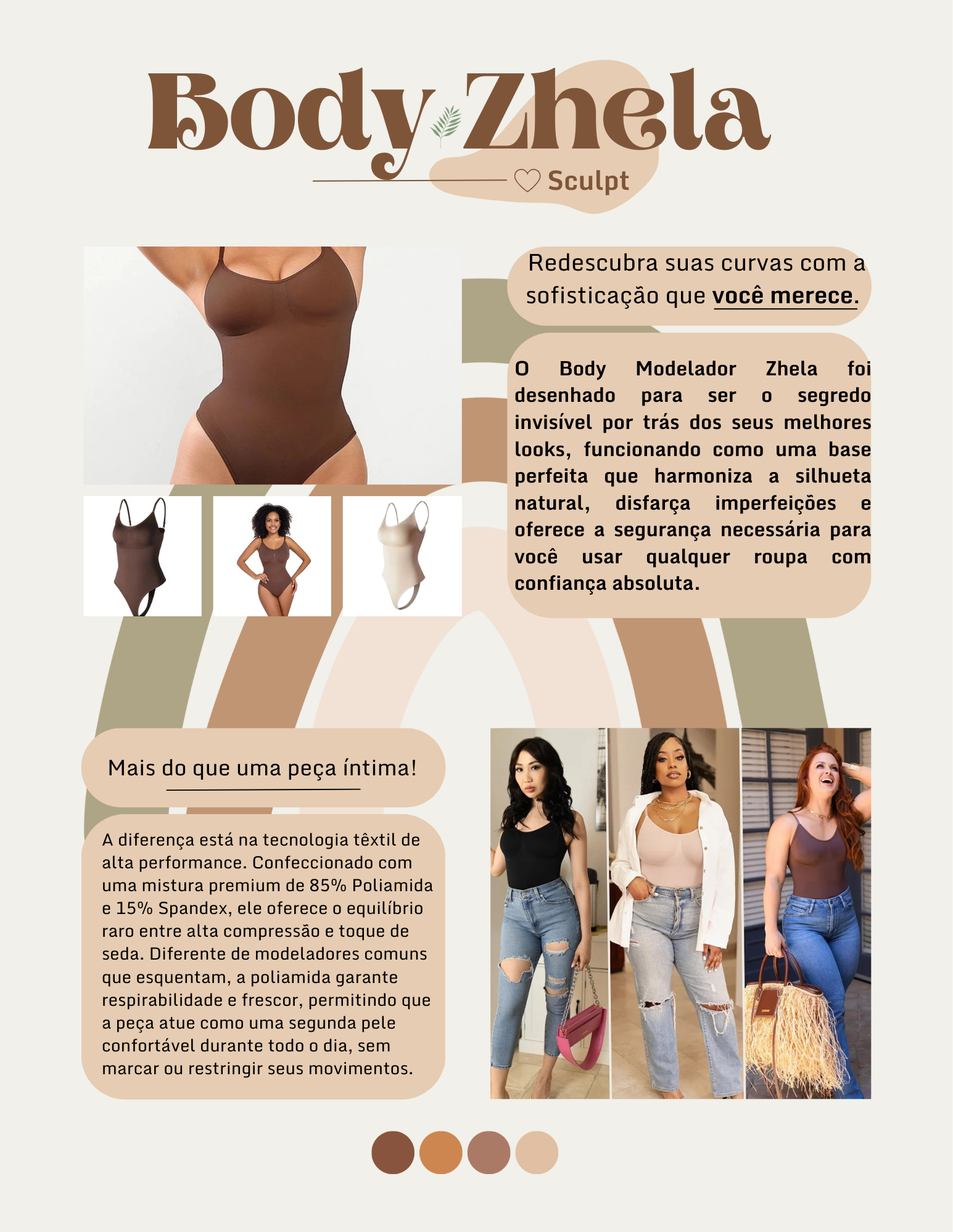 Nível de Controle: Firme. Proporciona compressão estruturada para esculpir a silhueta com segurança.