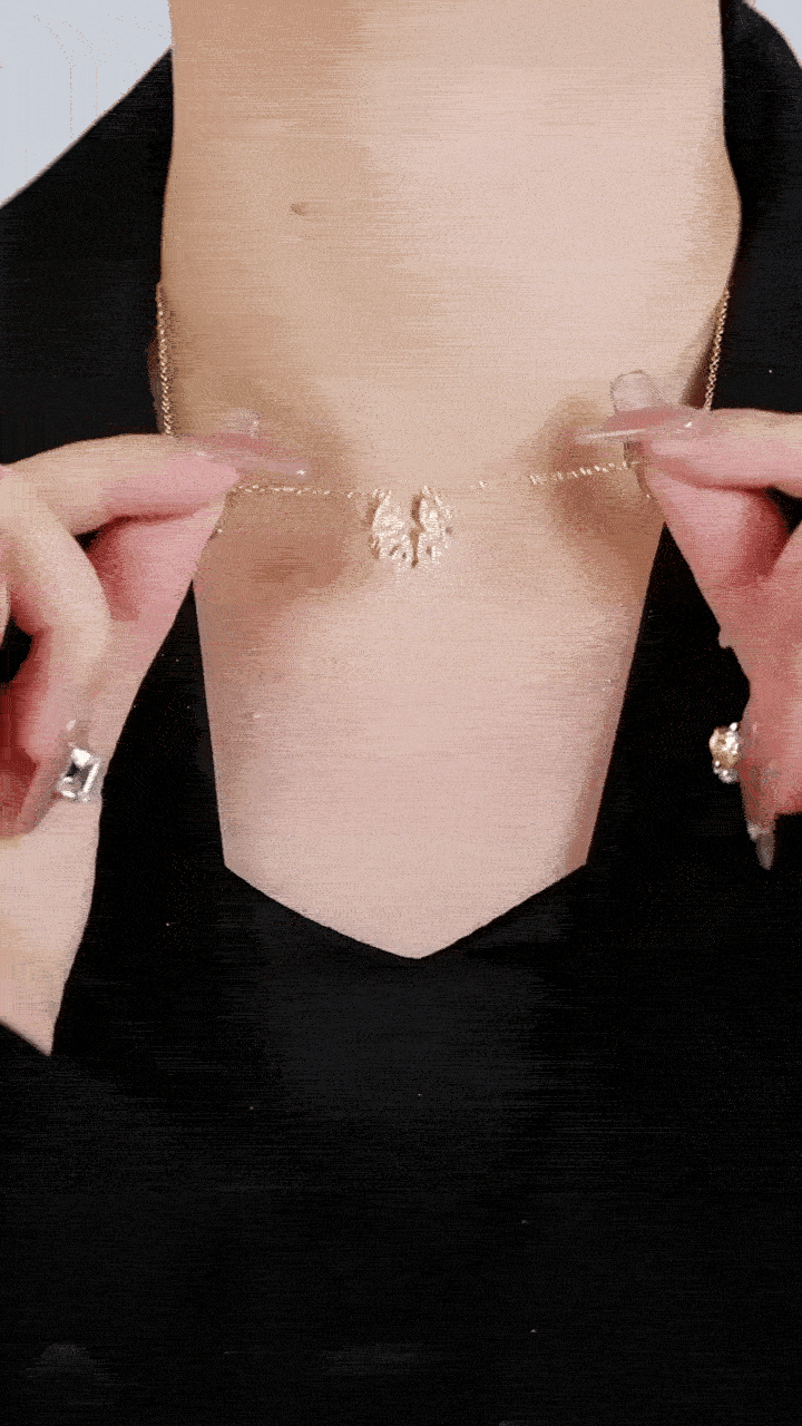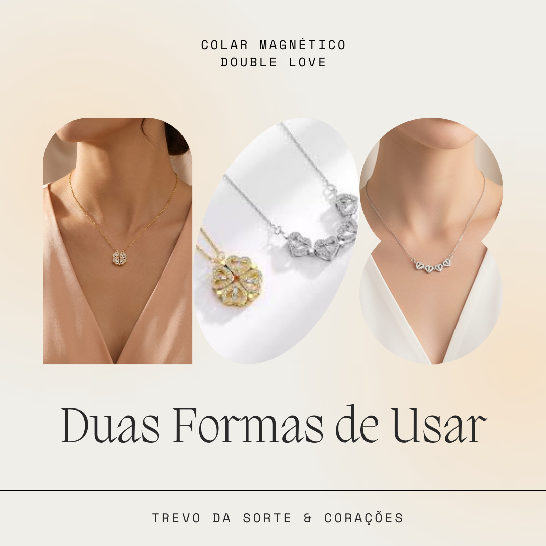 O Colar Double Love é uma obra-prima de engenharia e design. Com um mecanismo magnético inovador, esta peça oferece duas formas de uso distintas em uma única joia: pode ser usado como um Trevo de Quatro Folhas (símbolo de sorte e prosperidade) ou aberto, transformando-se em uma fileira de quatro corações delicados (símbolo de amor e união).
